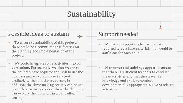 I collaborated as a co-leader on the Innovation Guidance Project in 2022, alongside my colleague, focusing on K2 children. Our project involved a partnership with KidsSTOP, and together we embarked on the "Everyday Science" initiative, delving into the realms of STEAM (Science, Technology, Engineering, Arts, and Mathematics).